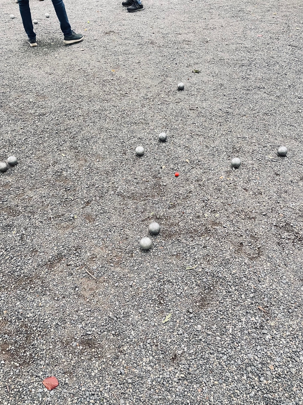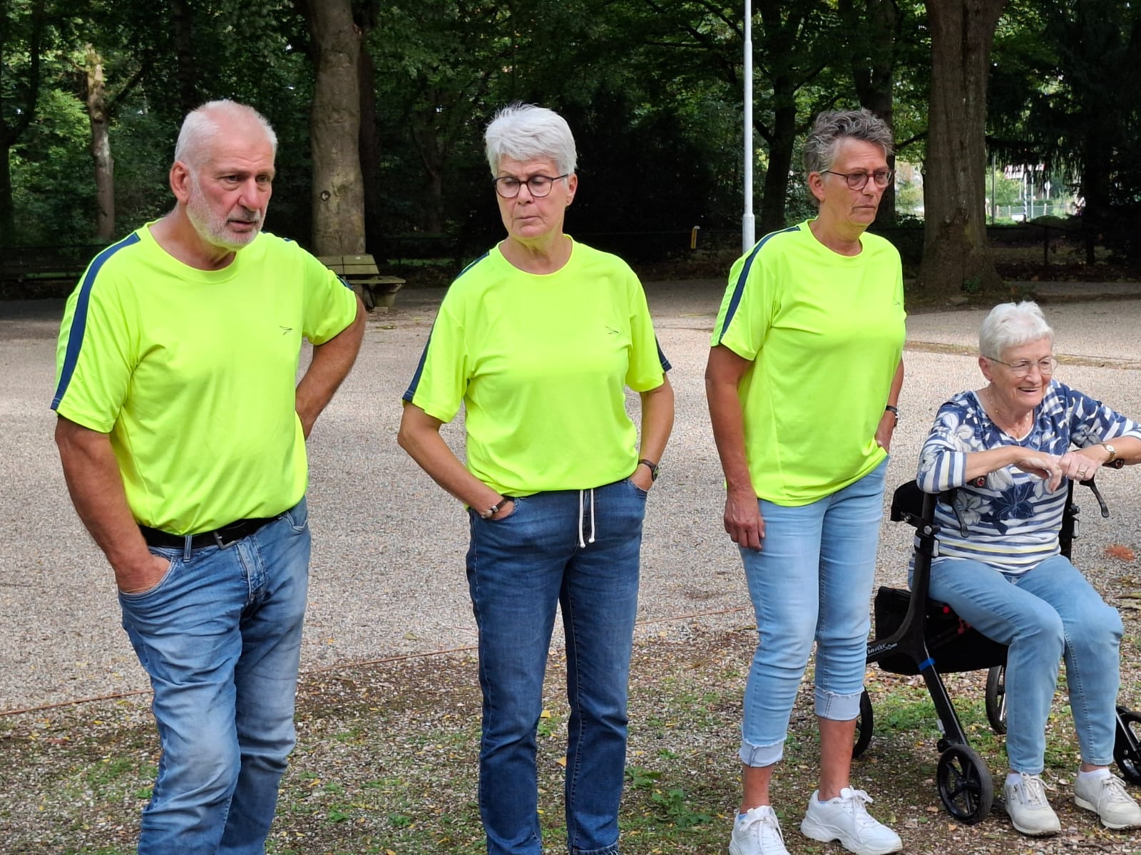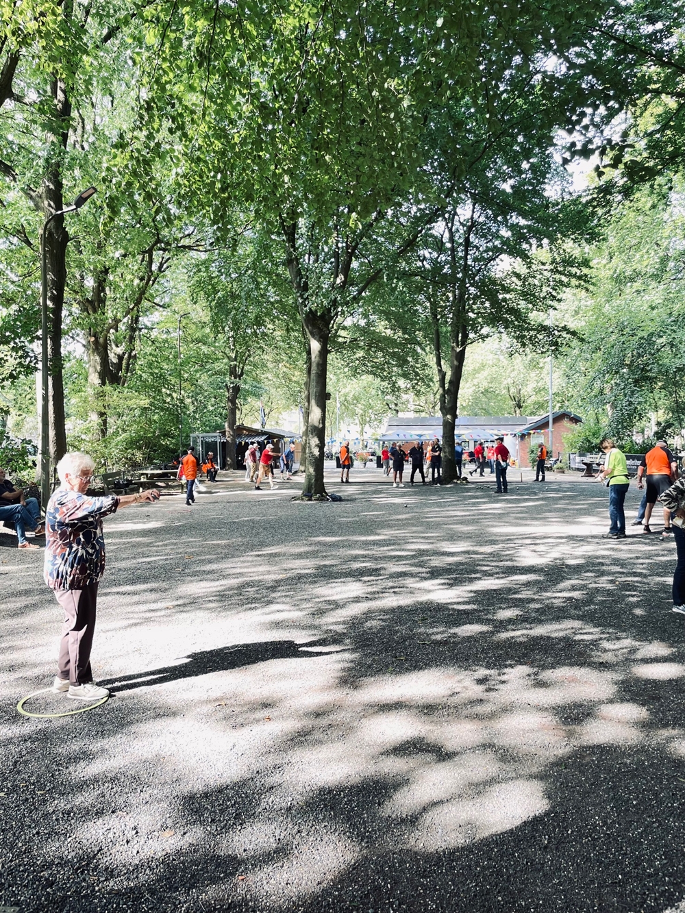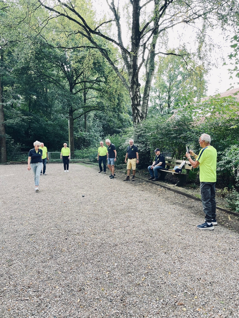 Aangezien wij om 11.20 al aanwezig waren hadden wij rustig de tijd om alle banen even te verkennen. De banen waren beter geprepareerd dan verleden jaar. Elke baan was voorzien van grind, (al dan niet met schelpen, witte steentjes, zwarte steentjes) het zwarte zand was verdwenen. Voordat wij begonnen om 12.00 uur kregen wij koffie met cake geserveerd. Met goede moed werden de teams ingedeeld door onze teamcaptains en het spel ging los….