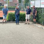 Zaterdag 5 juli werd in Rossum het Internationaal toernooi gespeeld bij JBV Rossum aan de Boschweg. Om 10 uur verzamelden zich een aantal leden om samen op de fiets hun benen alvast los te fietsen voor dit toernooi. Een enkeling kwam met de auto waarna bij binnenkomst je getrakteerd werd (prijs 1.50 euro) op een kop koffie met gratis een plak cake. Het voelde voor de redacteur als een ‘warm bad’. Dit omdat hij iedereen kende uit het verre verleden. De ontvangst was er niet minder hartelijk om. (Zo dat is eruit). Ook waren er talrijke toeschouwers aanwezig, wij danken jullie voor deze komst.
