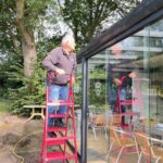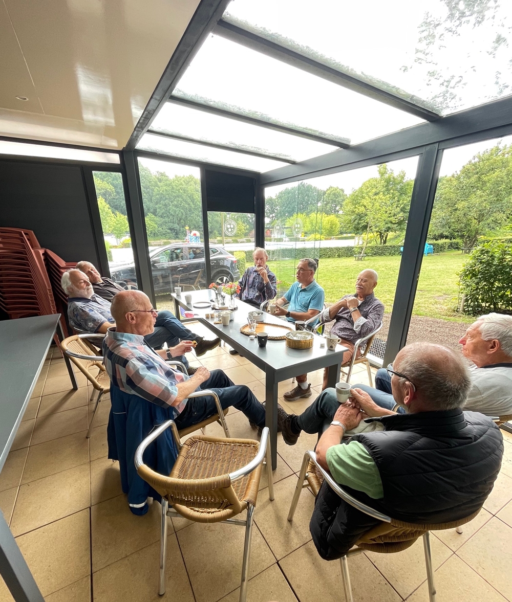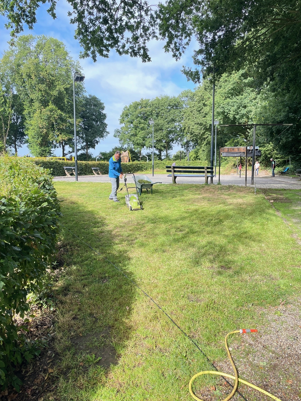 Dat vele handen licht werk maken bleek vanochtend (dinsdag 8 juli) weer eens. Met 9 mensen zijn wij lekker aan het werk geweest om het hele gebied van O.P.C. La Montagne weer piek fijn eruit te laten zien. De ene was met elektrisch bezig, de andere met de oprijlaan, weer een ander met de serre, de banen en het lange gras. Missie voltooid kunnen we wel zeggen. Wij mogen met zijn allen trots zijn, ondanks dat er ook veel gepraat en gedronken wordt, het voor elkaar gekregen hebben. Het ziet er top uit. Vielen Dank voor al het goede werk. Het was een geslaagde maar zeer gezellige ochtend die om 8.30 begon en eindigde tegen 11.30 uur. Mocht je zelf een keer zin hebben om mee te doen, geef het aan en je wordt ingedeeld. Het werken met veel mensen tegelijk is voor herhaling vatbaar.